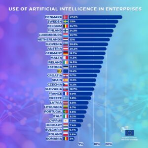 Percentuale di imprese che utilizzano tecnologie di IA nell’UE. Dati del Eurostat 2024.