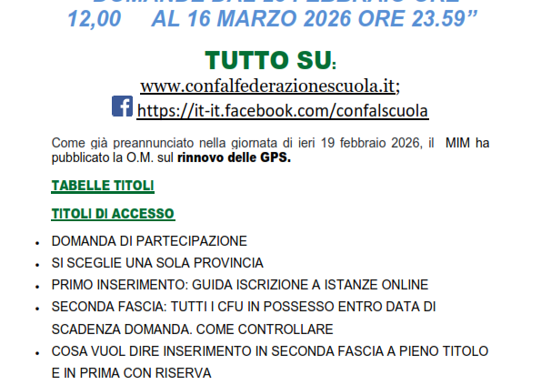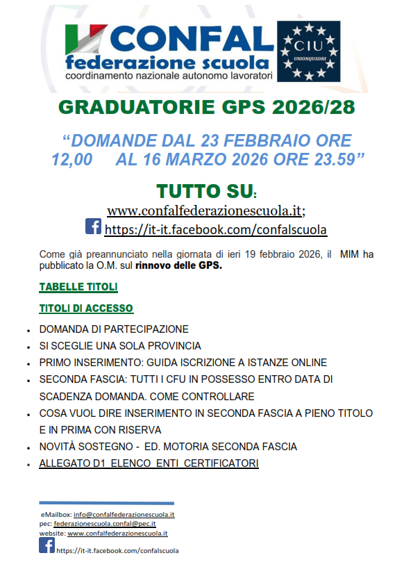 GRADUATORIE GPS 2026/28. Febbraio 20, 2026/in Comunicati stampa, Documenti, In Evidenza, News /da zaira https://www.ciuonline.it/wp-content/uploads/2026/02/Domande-dal-23-febbraio-ore-12-al-16-marzo-2026-ore-23_001.png 842 595 zaira http://www.ciuonline.it/wp-content/uploads/2024/05/Logo-CIU-Ufficiale--300x289.jpg zaira2026-02-20 16:04:412026-02-20 16:04:41GRADUATORIE GPS 2026/28.